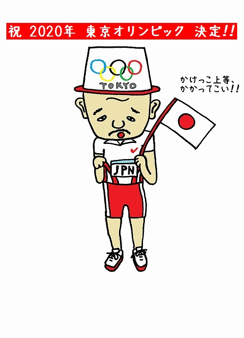祝東京オリンピック用のワシの服装。急遽オーダーメイドしたんじゃが、有り合わせ感がハンパないのじゃ。。。