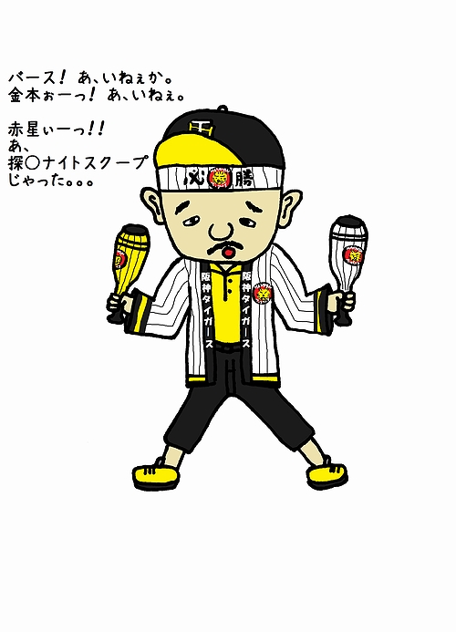 野球観戦用のワシの服装。ワシは全球団応援しとります。今回は阪神バージョンじゃ!!