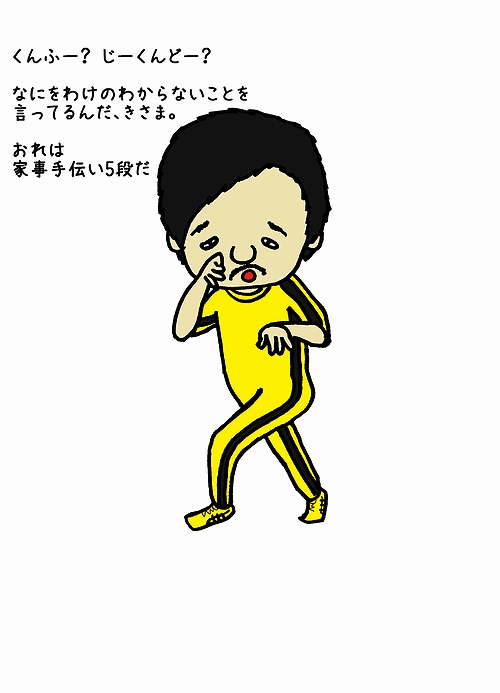 ブルース・リー風キャラクター用のワシの服装。たまーに阪神ファンと間違えられるのじゃ。。。