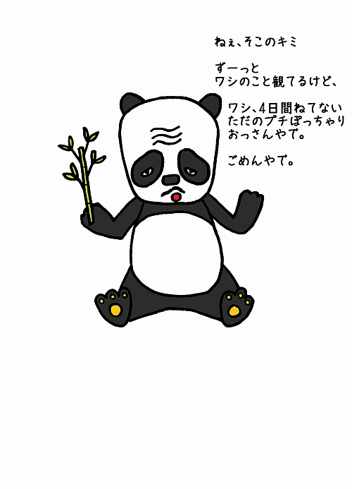 パンダとして動物園で働く用のワシの服装。めっちゃ人気なんじゃが、正体がおっさんってことを客は知らない。