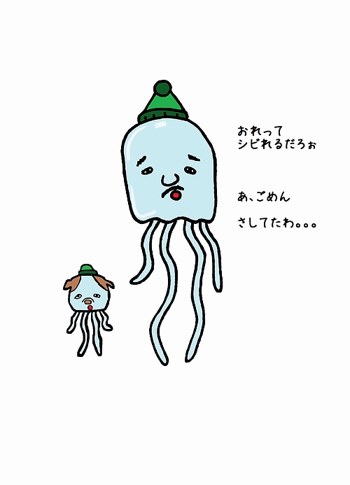 クラゲとして生きてたとき用のワシの服装。陸にあがるとグニャグニャです。