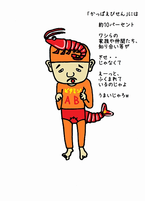 エビを食べたいとき用のワシの服装。ぶりっぶりんっの焼き伊勢えびとかっぱえびせん。これら最高!!