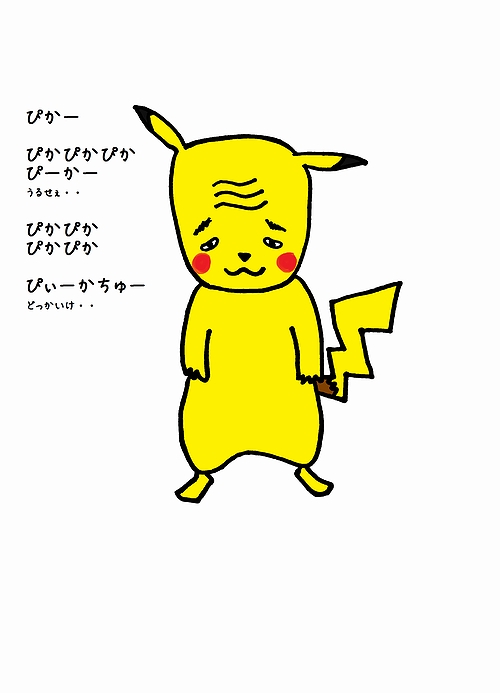 ピカチュウ風キャラクター用のワシの服装。電気を作るときは下敷きを使いますじゃ。