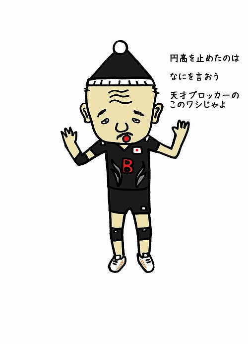 バレーボールをするとき用のワシの服装。我がチーム「ブラックボーシーズ」は町内最強!!