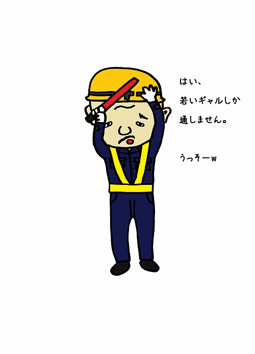 工事現場で交通整理するとき用のワシの服装。UV対策は重要なのじゃ!!