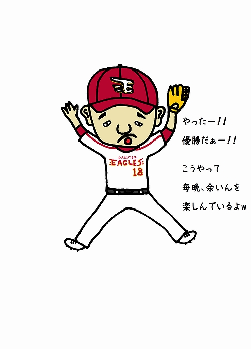 楽天の田中将大投手風キャラクター用のワシの服装。優勝ってええ気持ちじゃなー。