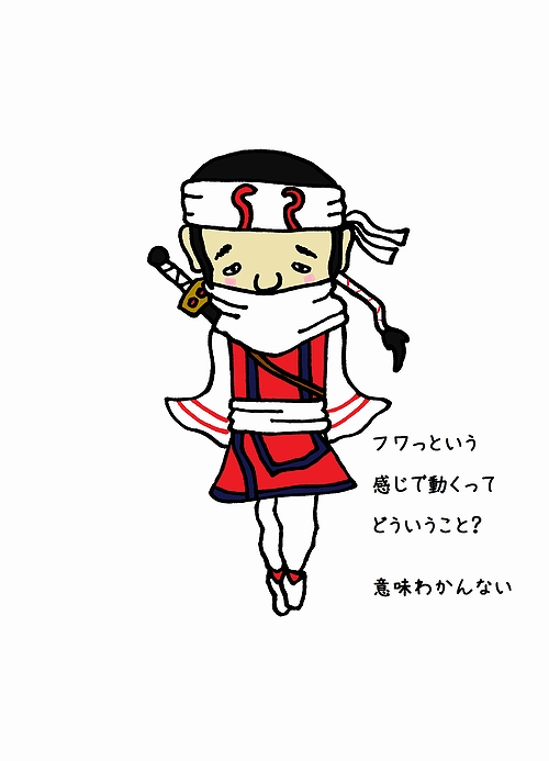 ガチャピン風キャラクター用のワシの服装。あいつはなんであんなに運動神経がええんじゃろ?