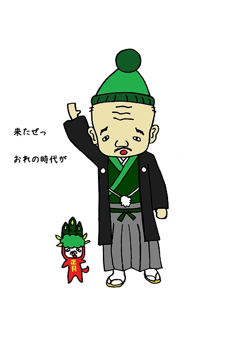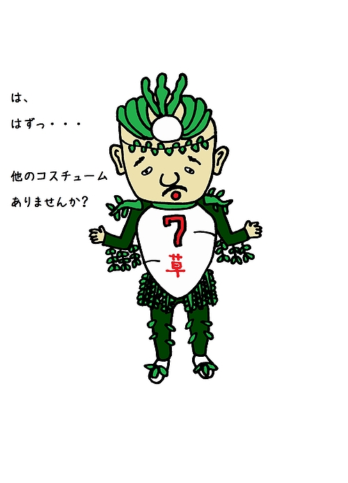 七草マンとして仕事するとき用のワシの服装。無病息災を祈願してみんなで七草粥食べるじゃよ。。