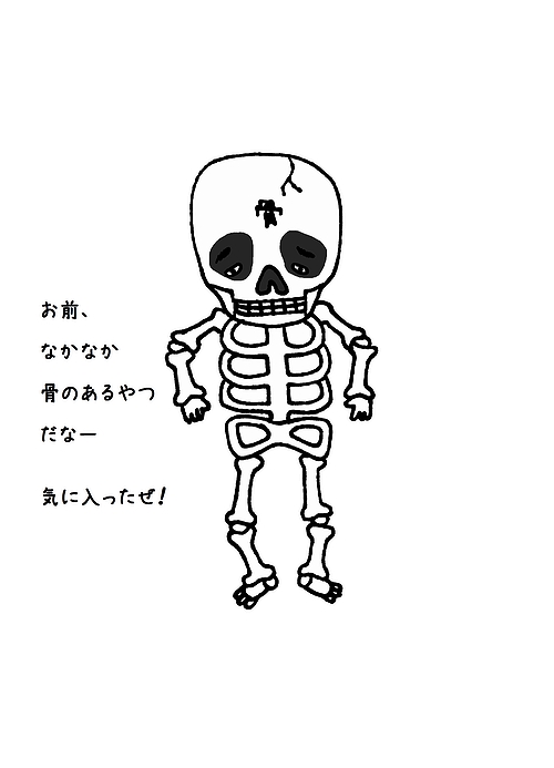 ガイコツとして生きてた用のワシの服装。骸骨のときの主食は牛乳と魚の骨でした。