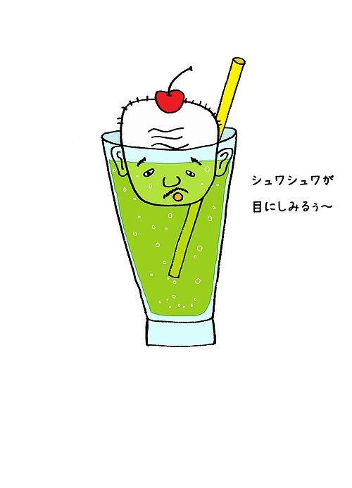 クリームソーダとして生きてたとき用のワシの服装。昔ながらの喫茶店的な飲み物じゃのう。