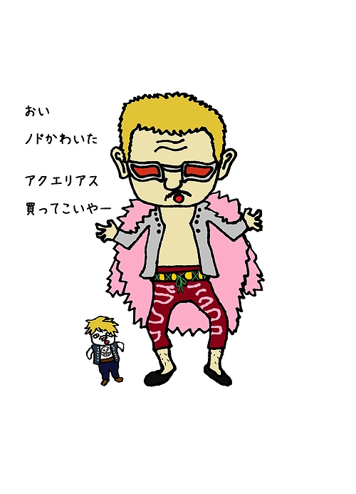 ワンピース ドンキホーテ・ドフラミンゴ風キャラクター用のワシの服装。イトイトの実って響きは弱そうなのに・・。