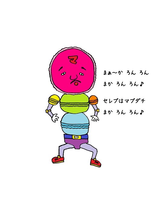 セレブ菓子戦士マカロンマンとして生きてたとき用のワシの服装。カラフル過ぎて目が痛いと言われます。