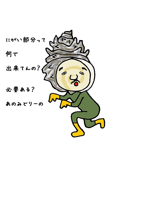 夏の海産物代表さざえとして生きてたとき用のワシの服装。ワシはあのコリッコリしたところが好きじゃなー。