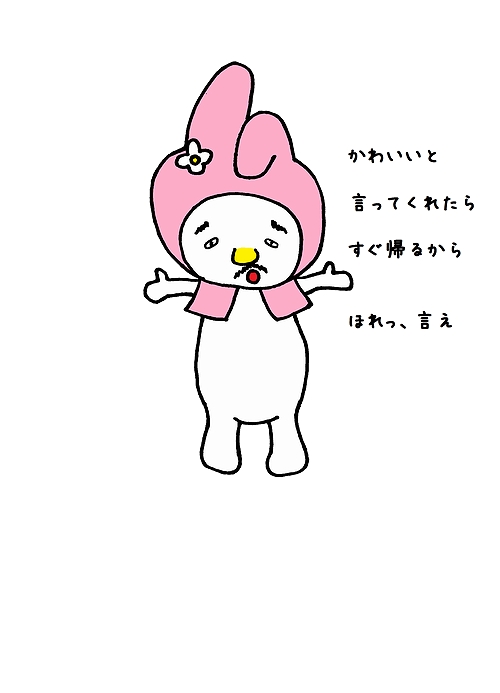 マイメロディ風キャラクター用のワシの服装。おばあちゃんからもらったこの頭巾がお気に入りらしいです。