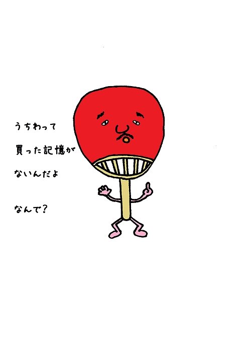 ウチワとして生きてたとき用のワシの服装。団扇で避暑地の夏を過ごすと風流だよねぇ。日本ってええなぁ~。