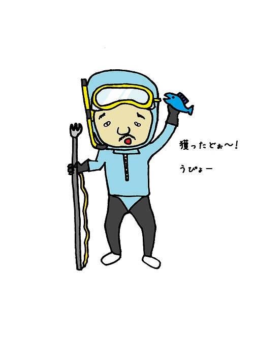 黄金伝説に出演してるよゐこの濱口優風キャラクター用のワシの服装。モリで魚を刺して油にドボーンさ。