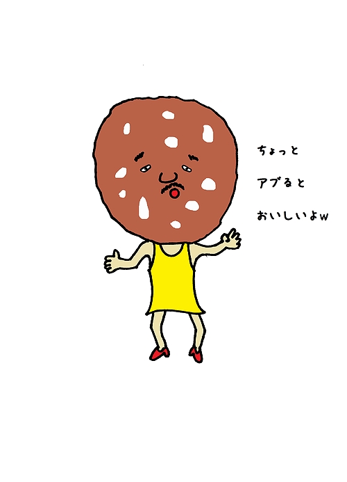 サラミとして生きてたとき用のワシの服装。ビールを片手にあぶったサラミをパクリっ!最高だぜっ!