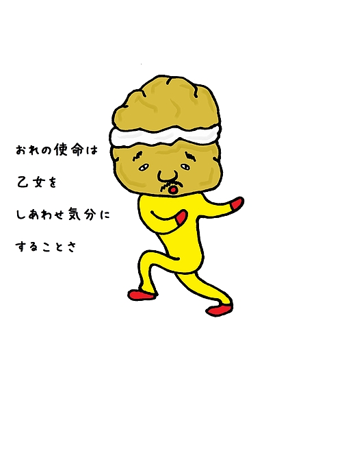シュークリームとして生きてたとき用のワシの服装。生クリームとカスタードがたっぷりのやつ、いいね!