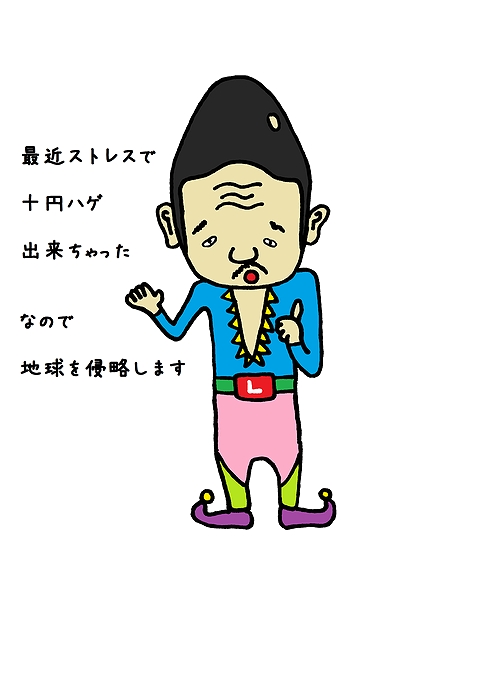 頭デカ足ミジカ星人として生きてたとき用のワシの服装。意外と冷静で残虐な一面を持つ宇宙人ですよ。